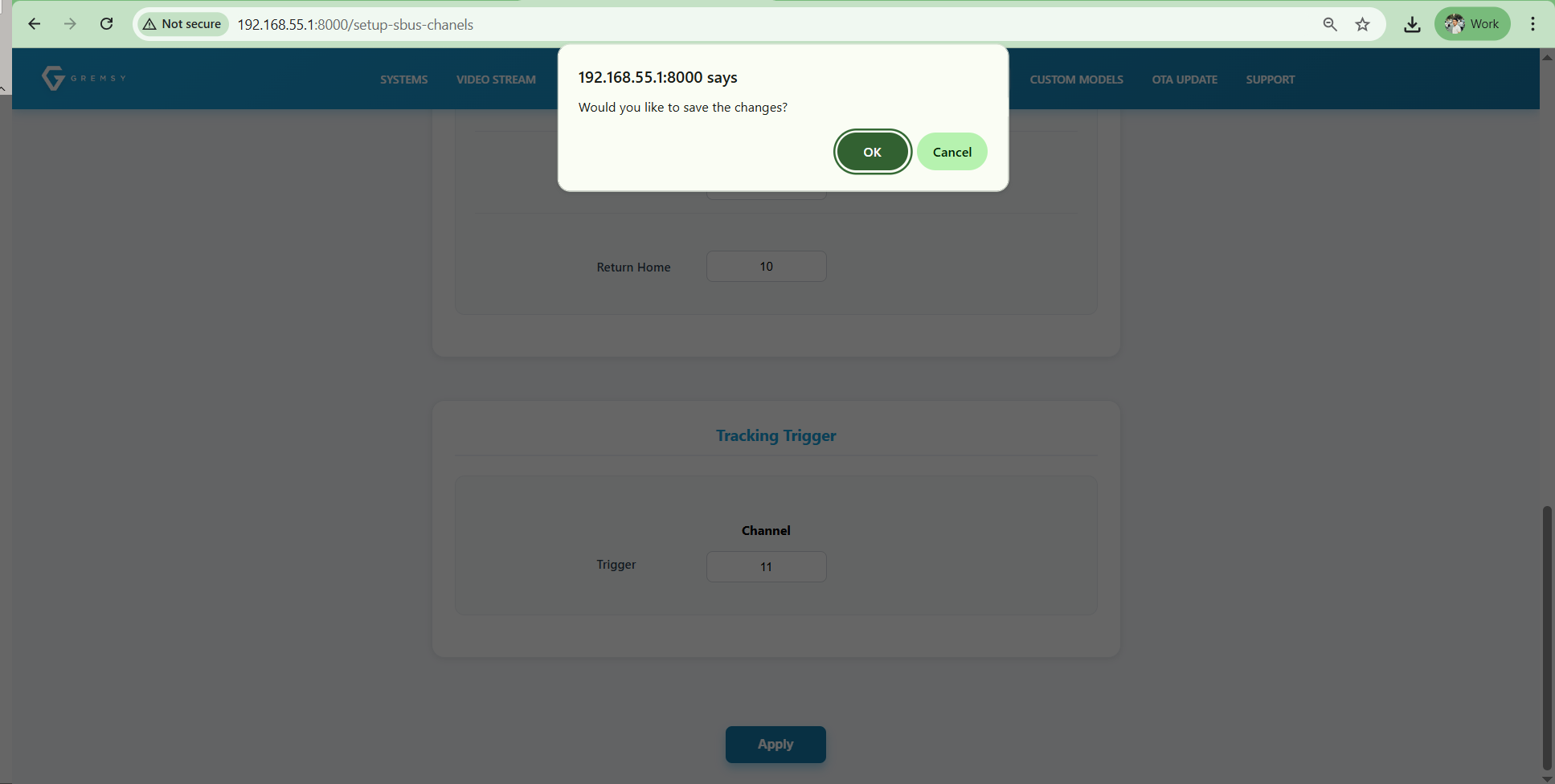 After all channels are assigned, click Apply at the bottom of the page. When the confirmation pop-up appears, click OK.