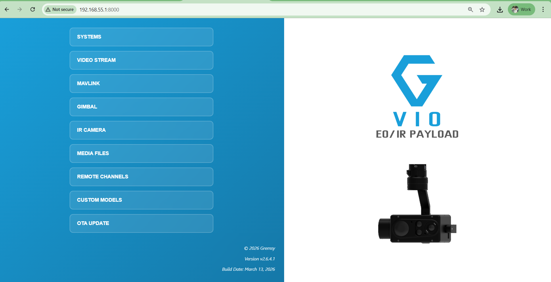 The examples below use the Gremsy VIO payload, but the same configuration flow can be applied to other Gremsy payloads that support SBUS input.