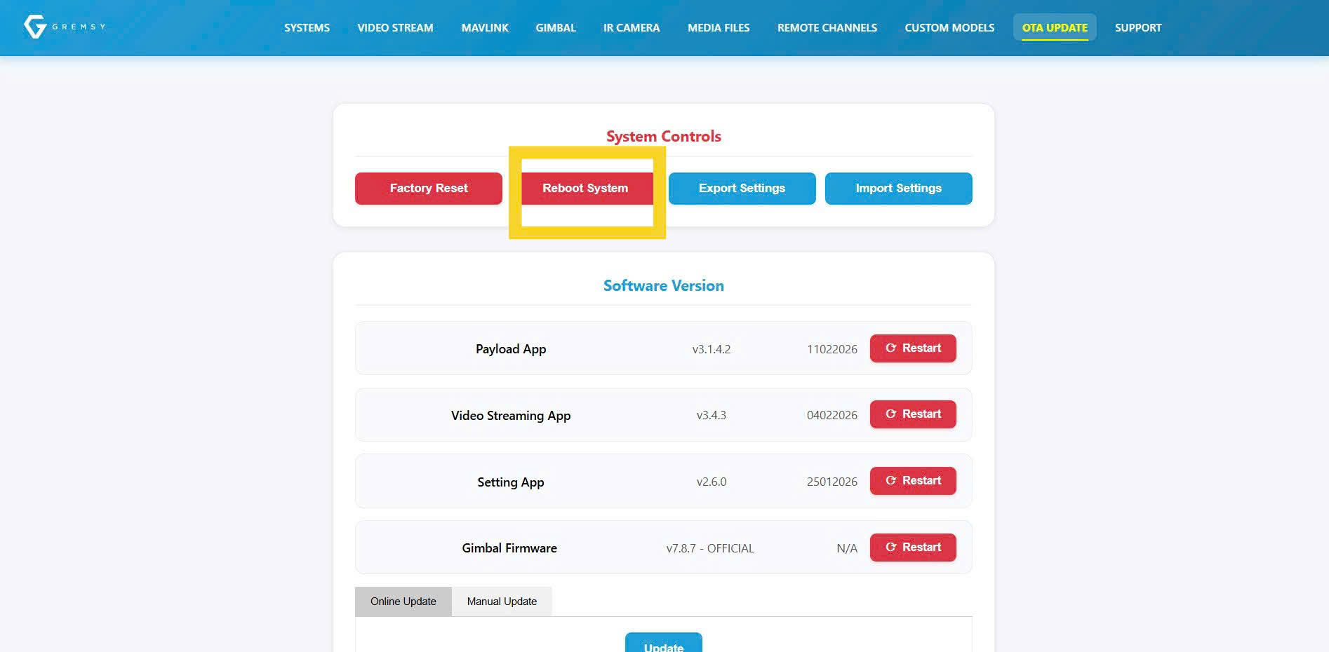 If you have any concerns, please contact support@gremsy.com or submit a ticket via this portal for further assistance.