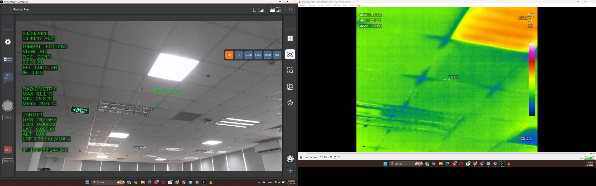Yes, the system allows for independent parallel RTSP streaming for EO and IR. You can set up distinct streams in WebSetting.